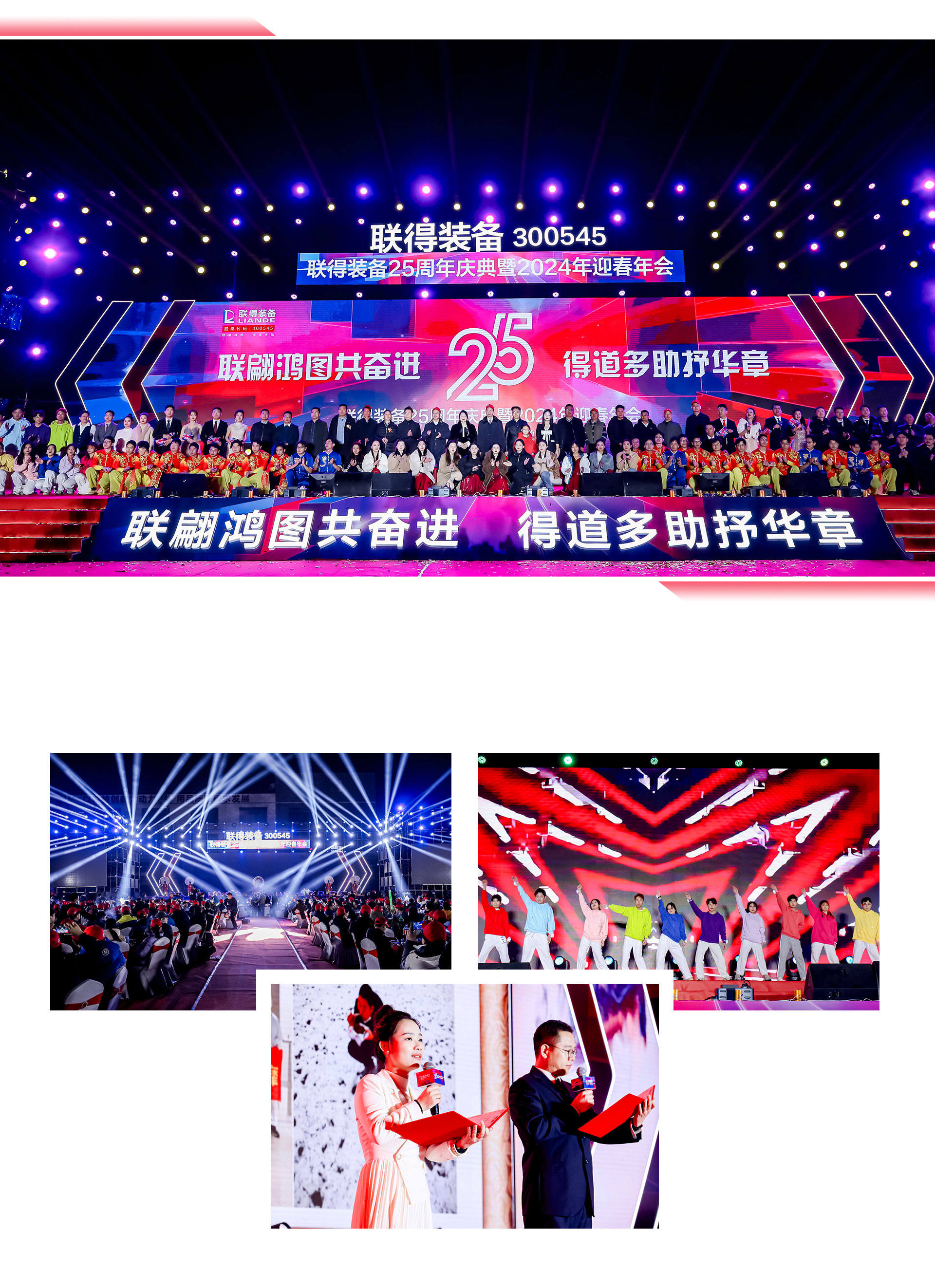 1 月 25 日,在東莞聯鵬工業(yè)園,聯得裝備 25 周年慶典暨 2024 年迎春年會盛大舉行,這是一場精心打造的難忘盛宴。舞臺搭建獨具匠心,堅實的架構承載著夢想與榮耀;燈光音響交相輝映,營造出如夢如幻的氛圍。舞臺節(jié)目編排精彩紛呈,每一個動作、每一段旋律都飽含深情。航拍視頻從空中俯瞰,記錄下這盛大而又溫馨的場景?,F場布置美輪美奐,每一處裝飾都透露著用心與期待。這一切的精心策劃和準備,只為展現聯得裝備的輝煌歷程與美好未來。在這里,大家共同歡慶,共同展望,攜手邁向更加燦爛的明天!